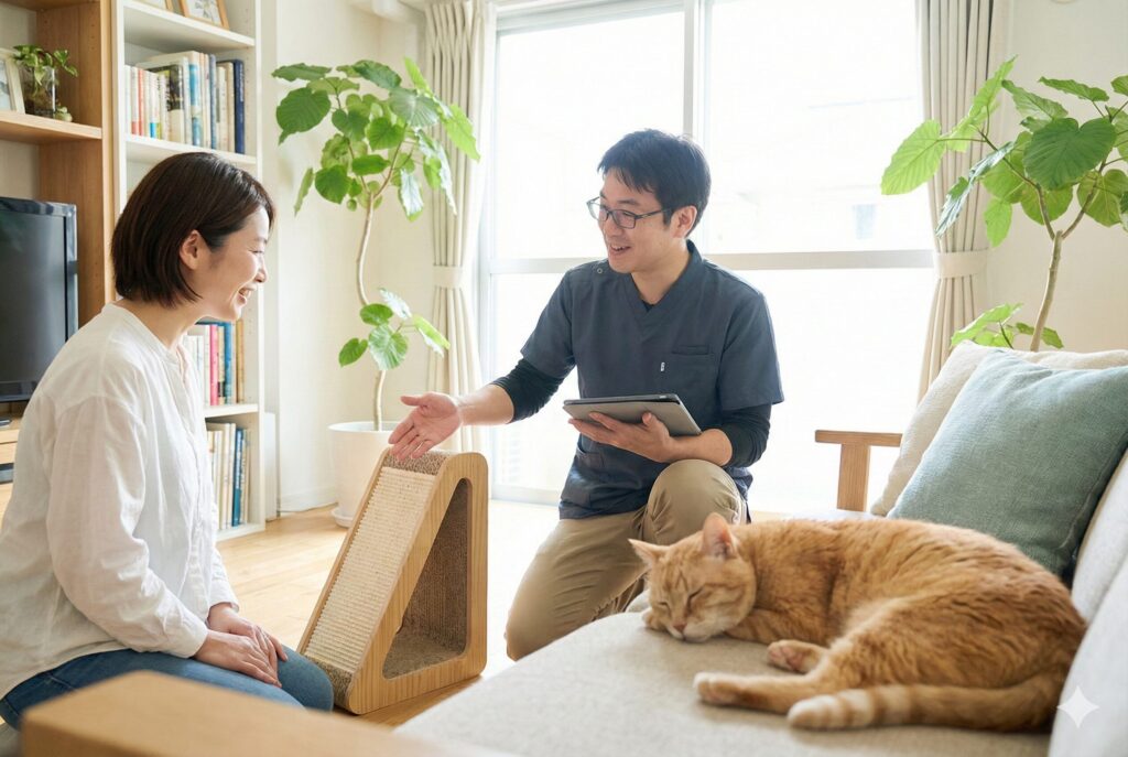 これは、「飼い主さんが猫を連れて行く」のではなく、「獣医師が猫の家に来る」スタイルです。