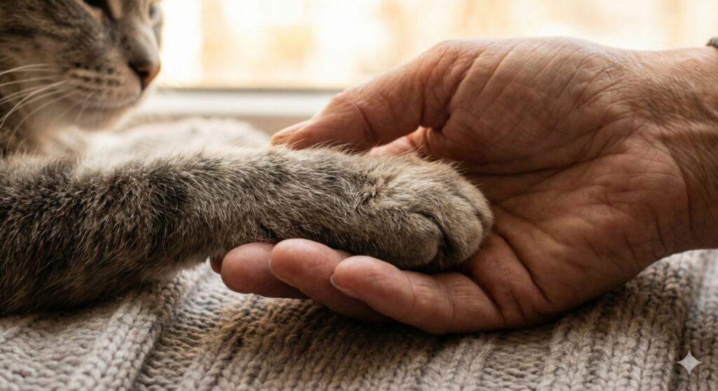 老猫の介護において、「頑張る」という言葉は時に呪いになります。 真面目で愛情深い飼い主様ほど、ご自身を犠牲にして頑張りすぎてしまいます。